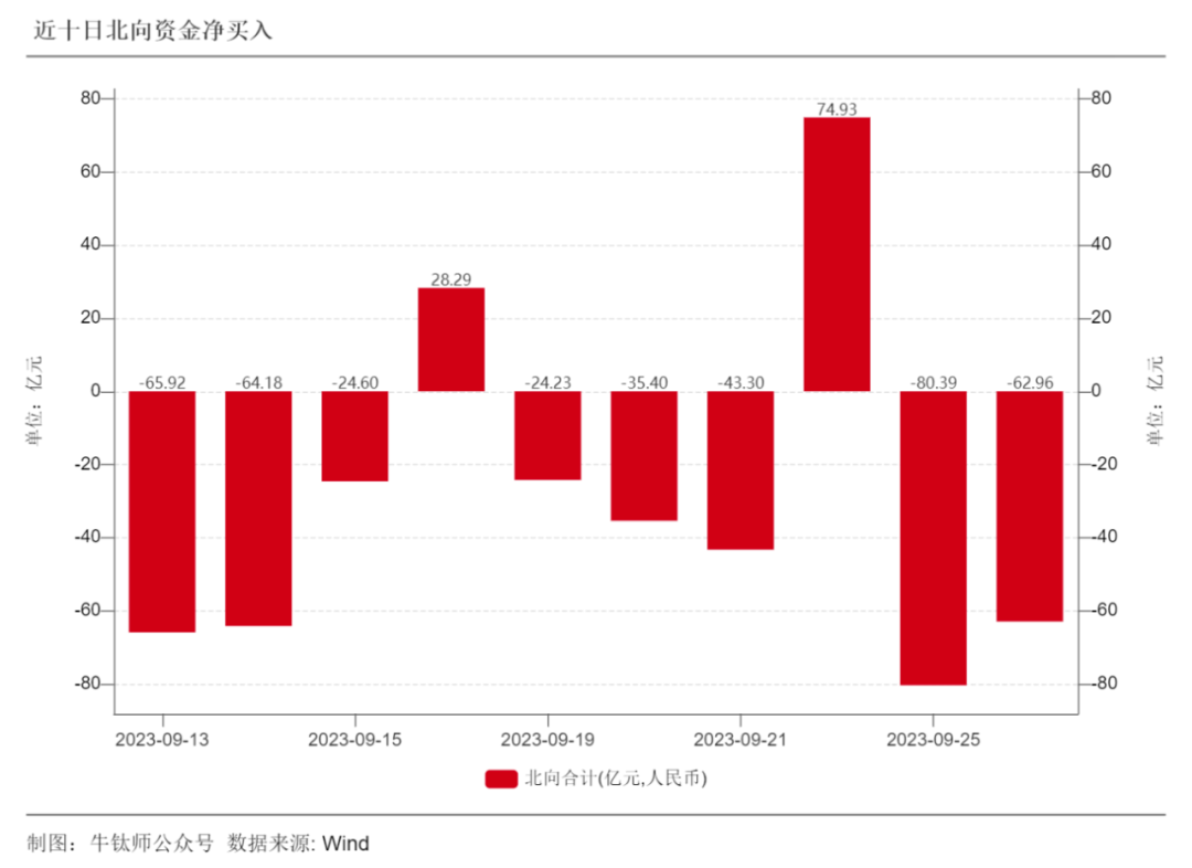 今日北向资金全天成交金额859.28亿元,占A股总成交额的12.9%。北向资金当日净卖出462.96亿元;其中,沪股通净卖出29.83亿元;深股通净卖出33.13亿元。据Wind数据,近十日,北向资金有八日为净卖出。