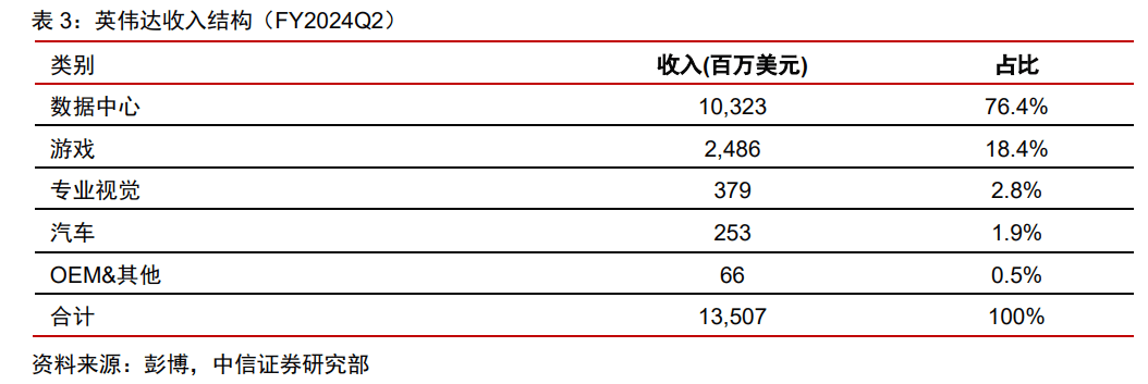 其中游戏显卡和数据中心合计收入占比接近 95%,是主要业务。