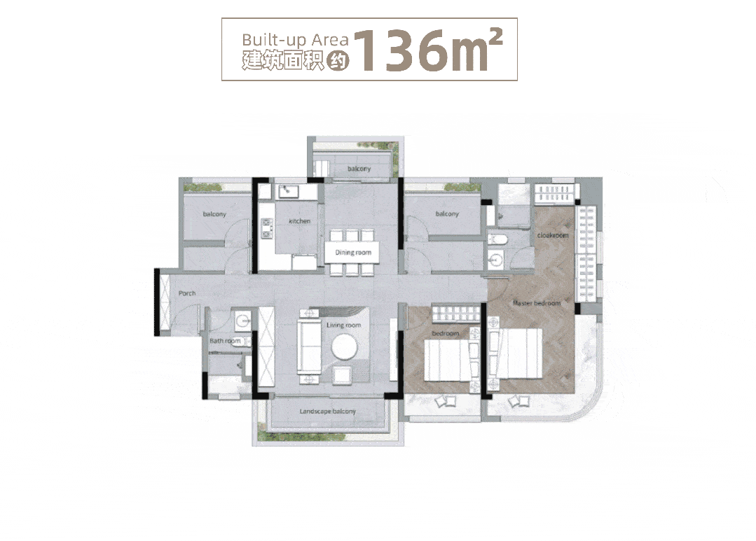如果旨在高端改善,那么决不能错过约136㎡四房