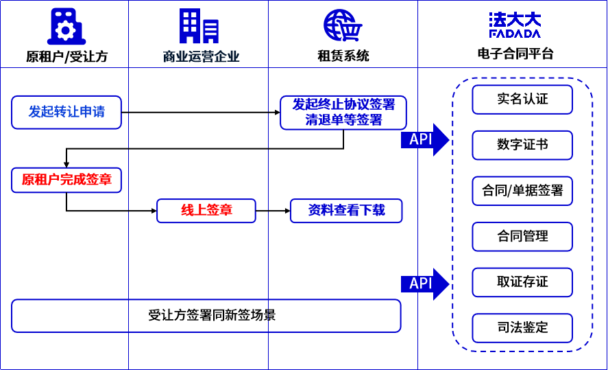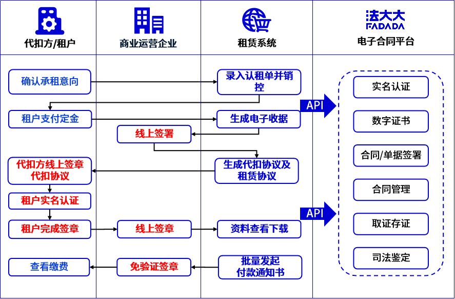 1、通过法大大开放API平台实现与租赁系统的快速对接;