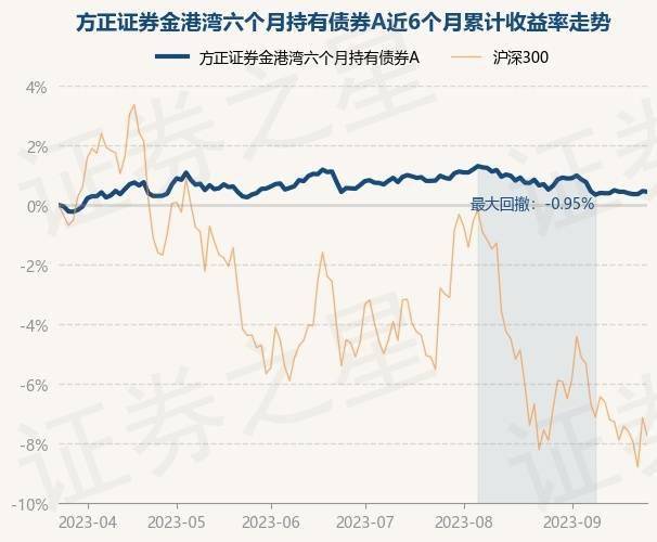 9月26日,方正证券金港湾六个月持有债券A最新单位净值为1.0338元,累计净值为1.5124元,较前一交易日下跌0.02%。历史数据显示该基金近1个月下跌0.09%,近3个月下跌0.05%,近6个月上涨0.4%,近1年下跌1.31%。该基金近6个月的累计收益率走势如下图: