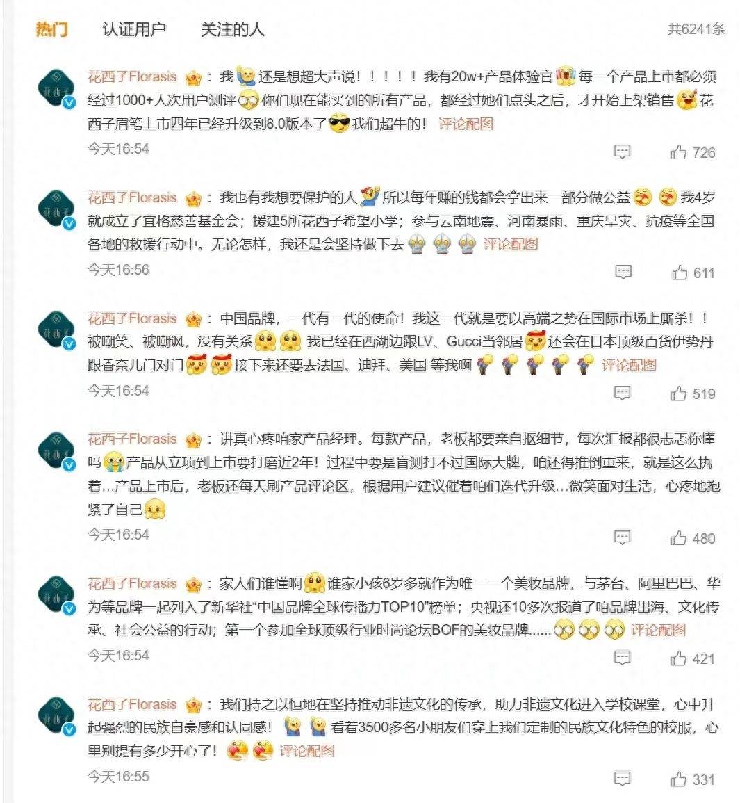 微博发布后,花西子官方号亲自在该条微博评论区发布多条留言回应此前网友质疑。