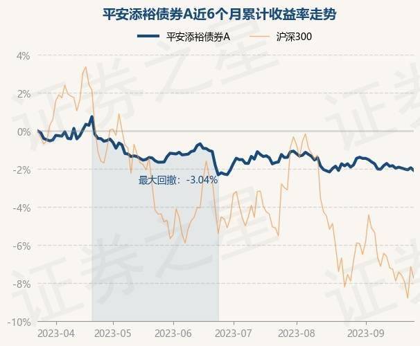 9月25日,平安添裕债券A最新单位净值为0.9794元,累计净值为0.9794元,较前一交易日下跌0.14%。历史数据显示该基金近1个月下跌0.18%,近3个月下跌0.32%,近6个月下跌2.11%,近1年下跌5.94%。该基金近6个月的累计收益率走势如下图: