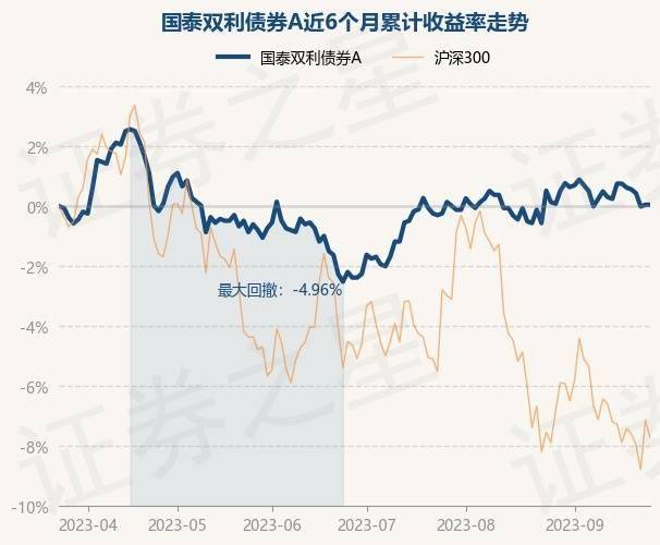 9月26日,国泰双利债券A最新单位净值为1.573元,累计净值为1.993元,较前一交易日下跌0.19%。历史数据显示该基金近1个月下跌0.25%,近3个月上涨2.48%,近6个月下跌0.13%,近1年上涨3.39%。该基金近6个月的累计收益率走势如下图: