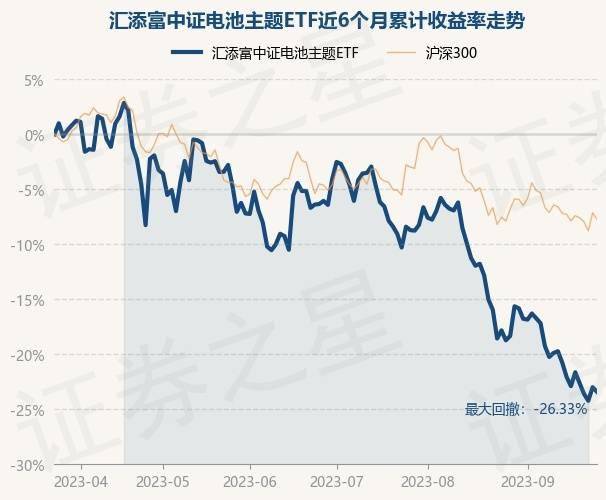 9月26日,汇添富中证电池主题ETF最新单位净值为0.6126元,累计净值为0.6126元,较前一交易日下跌1.0%。历史数据显示该基金近1个月下跌6.7%,近3个月下跌18.99%,近6个月下跌24.18%,近1年下跌38.08%。该基金近6个月的累计收益率走势如下图: