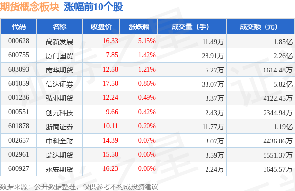 9月26日期货概念板块较上一交易日下跌0.25%,*ST中期领跌。当日上证指数报收于3102.27,下跌0.43%。深证成指报收于10060.15,下跌0.6%。期货概念板块个股涨跌见下表: