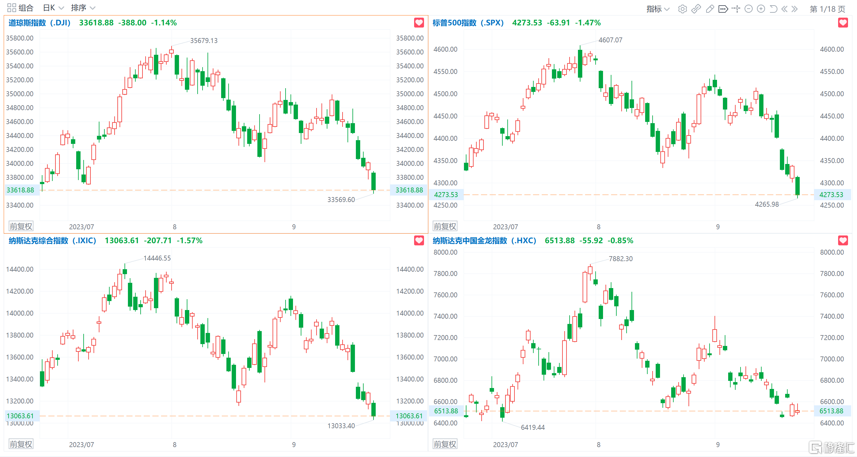 1、美股三大指数均跌超1% 创约四个月低位 亚马逊大跌4%;