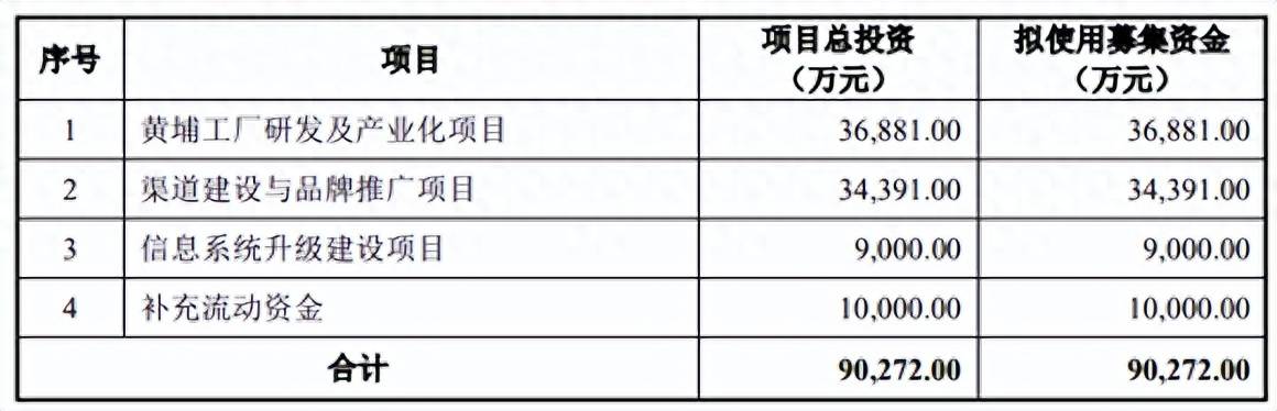 按照发行计划,润本股份原募集资金9.02亿元,拟用于黄埔工厂研发及产业化项目、渠道建设与品牌推广项目等。