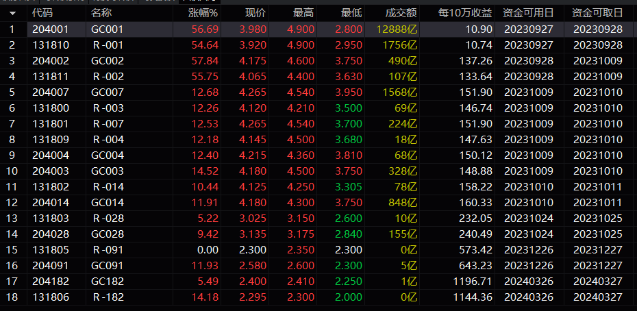 收益率飙升!沪深1天期国债逆回购盘中涨超90%