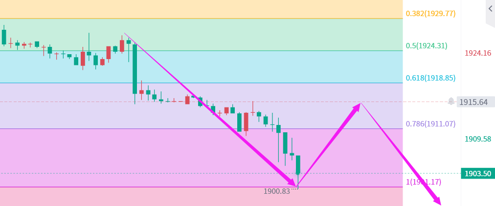 黄金操作建议:建议黄金上涨触及1912-1915直接空,止损1918,目标1900;回踩1895做多,止损1890,目标1910-1915;
