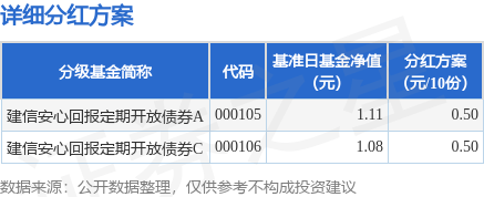 9月27日发布《建信安心回报定期开放债券型证券投资基金分红公告》。本次分红为本基金2023年度的第一次分红。公告显示,本次分红的收益分配基准日为9月9日,详细分红方案如下:
