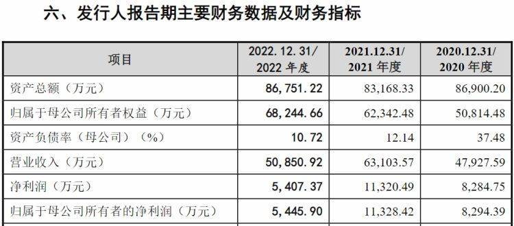 报告期内,公司营业收入分别为47,927.59万元、63,103.57万元和50,850.92万元,归属于母公司股东的净利润分别为8,294.39万元、11,328.42万元和5,445.90万元。2022年,公司线下门店运营、物流运输等正常业务经营受到外部特定因素暂时性影响,业绩同比下降,尤其是净利润,下滑超50%。