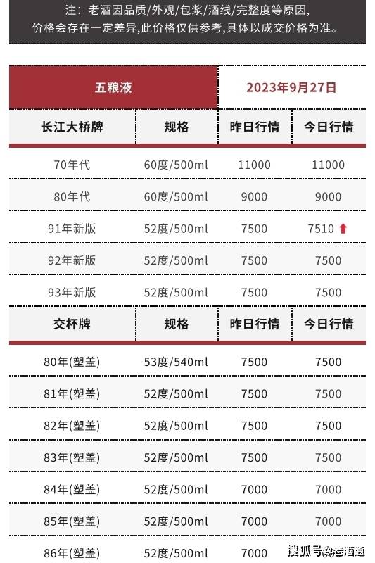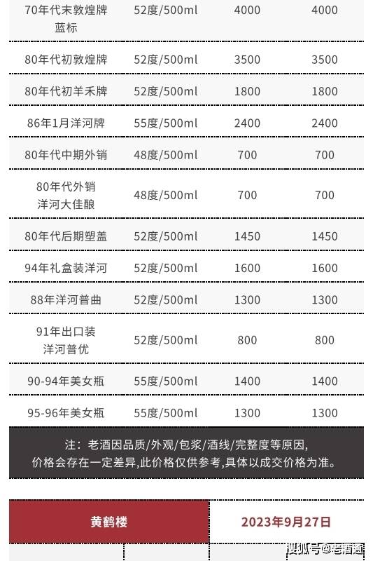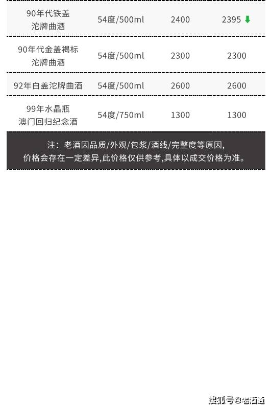 *价格说明:《老酒通》为信息交流服务平台,所发布的商品价格均为参考价,与市场成交价存在一定价差,仅供酒商酒友参考。因老酒价格受酒体、品相、包装、完整度、储存、市场库存等因素影响,即使是同款产品价格也会有所差距,还请知悉。