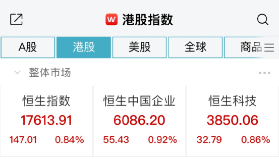 港股三大指数纷纷上涨,制药、生物科技板块涨幅居前,药明生物涨超5%。