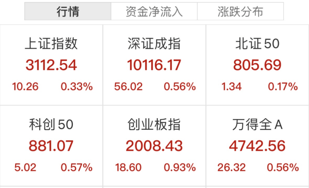 一起来看下上午的市场情况。今日A股三大指数冲高回落,截至午间收盘,沪指涨0.33%,深成指涨0.56%,创业板指涨0.93%。