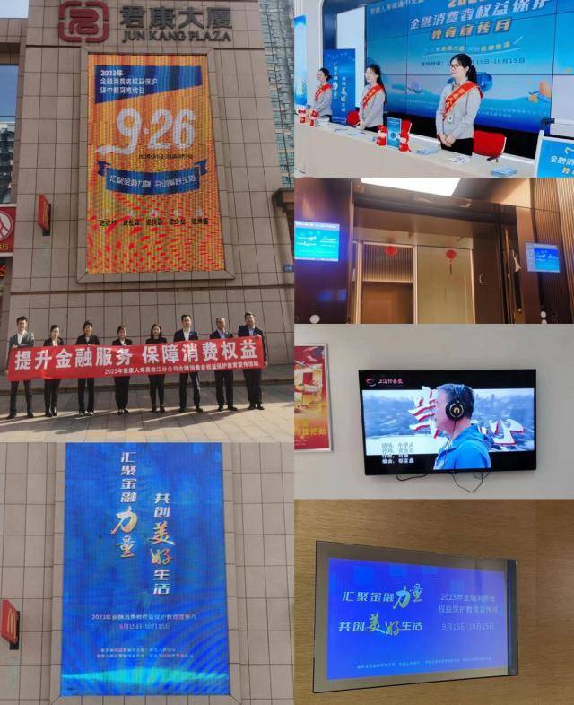 活动期间,君康人寿围绕活动主题,聚焦“普及金融知识”“防范非法金融活动”“倡导理性消费观念”“开展诚信文化建设”“办好为民实事”等主题内容,充分利用职场、营业网点LED、电视屏幕、户外大屏等资源,以及在营业大厅张贴条幅、海报、电子屏滚动播放活动口号等方式,积极营造金融知识教育宣传热潮,吸引客户与公众关注。