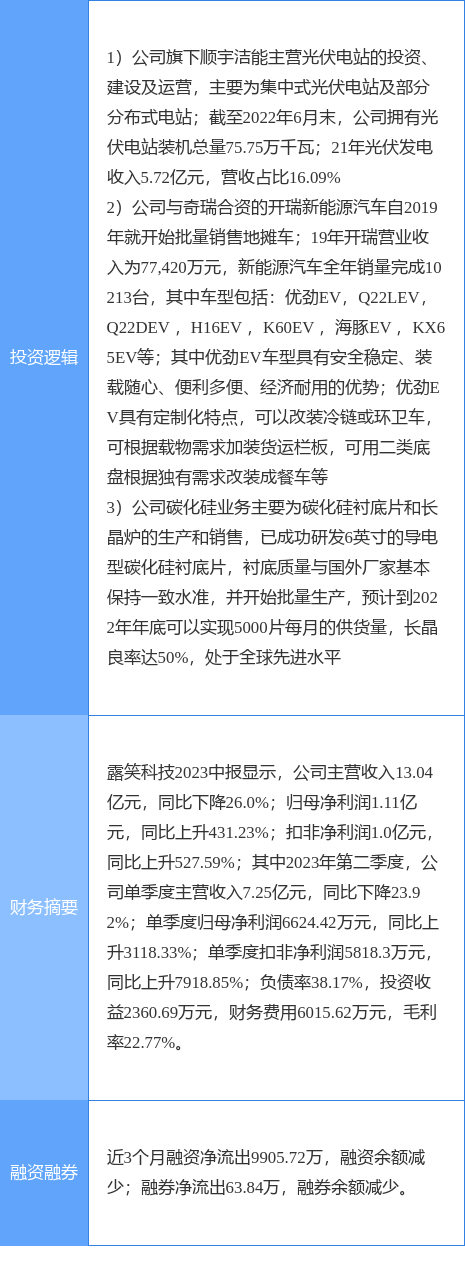 露笑科技涨停收盘,收盘价6.97元。该股于9点31分涨停,未打开涨停,截止收盘封单资金为9623.96万元,占其流通市值0.73%。