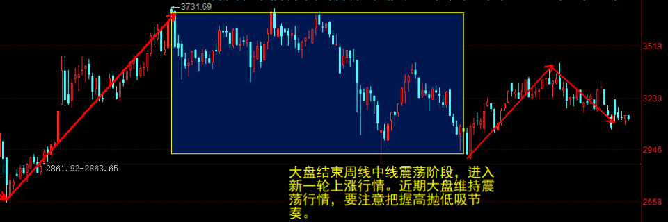 中期来看,大盘现处于中期震荡后的上涨行情。短期来看,大盘快速调整进入空头市场,周线展开调整,短期控仓观望为主。
