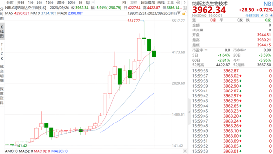 从估值上看,截至9月25日,纳指生物科技板块最新PE已回调至15.98倍。
