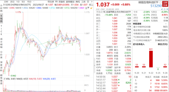 9月27日,主流ETF方面,表征美股医药行情的国内唯一纳指生物科技ETF(513290)收涨0.88%,收盘溢价率0.03%。值得注意的是,截至9月26日最新数据,纳指生物科技ETF(513290)近5个交易日内有4日获资金增仓,近60日获资金净流入超8900万元!