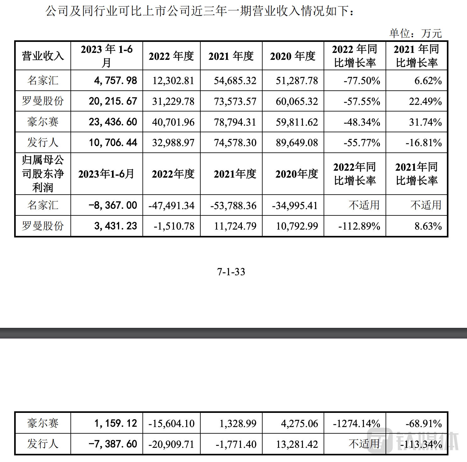 数据显示,2020年-2022年,与时空科技同行业的名家汇、罗曼股份和豪尔塞等公司营收都有较明显的下滑趋势,2022年营业收入同比增长率分别为-77.5%、-57.55%和-48.34%。