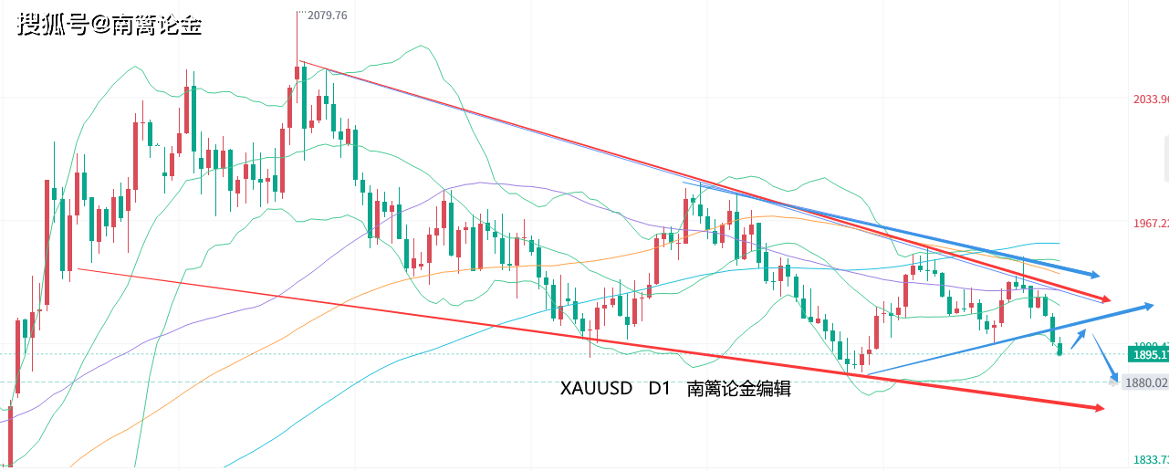 结合基本面指向,黄金以从2079延续下的楔形论调更合适。连接1938—1902—1884,可得下方支撑位1870,也同样也是空头们的阶段目标。