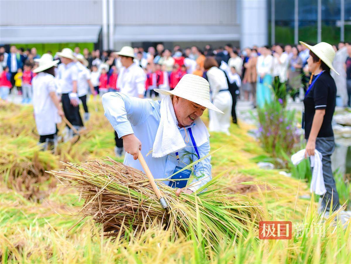 今年9月23日上午,公司二十多位总裁和员工代表再次拿起镰刀、穿上鞋套,走进共耘田,热火朝天地收割稻穗,喜庆丰收。