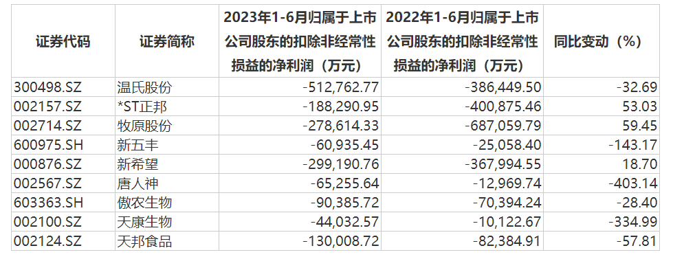 受生猪价格下行影响,上半年国内生猪养殖企业普遍亏损。
