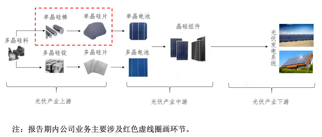 华耀光电是一家主要专注于光伏产业链中单晶硅棒、单晶硅片生产制造的高新技术企业,属于光伏产业链的上游。