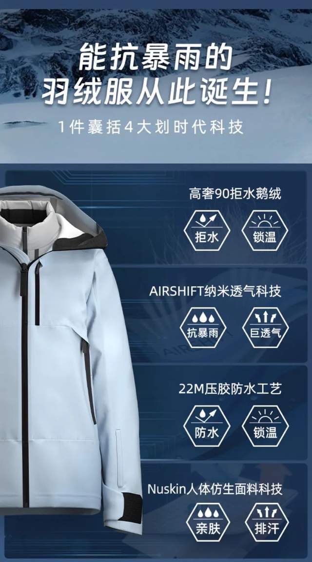 因此,保暖、透气、抗暴雨的“冰壳系列”,被鸭鸭归到了一个高水平的品类:冲锋衣羽绒服。
