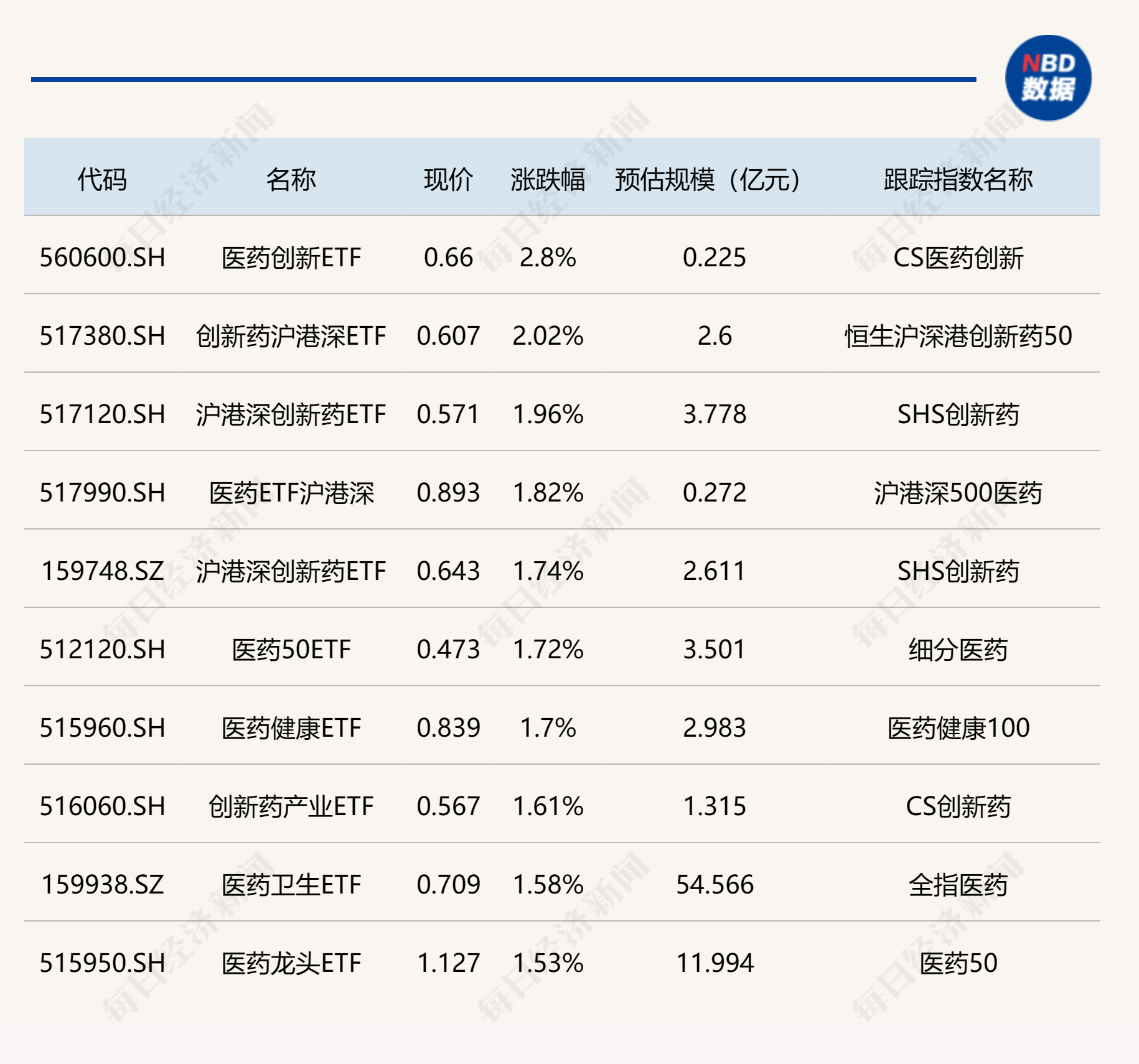 此外,多只跟踪创新药相关指数的ETF普涨约1.7%。