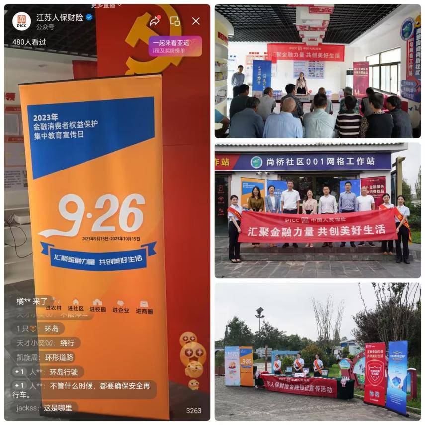 自9月15日以来,人保财险江苏省分公司(以下简称:江苏人保财险)各分支机构踊跃开展2023年“金融消费者权益保护教育宣传月”活动。根据国家金融监督管理总局江苏监管局的统一安排,9月下旬,江苏人保财险组织全辖机构集中开展了“五进入”活动,通过“进农村、进社区、进校园、进企业、进商圈”的教育宣传活动,向消费者普及金融知识、为消费者办实事,提升消费者抗风险能力,全省系统开展活动超50场次。