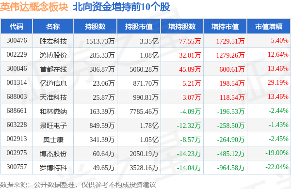 北向资金方面,当日英伟达概念板块北向资金持股市值为52.92亿元,减持1.37亿元。其中增持最多的是胜宏科技,增持了0.17亿元。减持持最多的是浪潮信息,减持了0.7亿元。英伟达概念板块北向资金持股变动明细见下表: