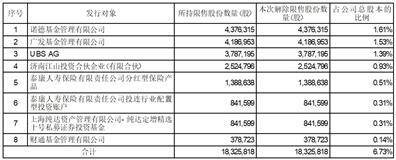注:上述解除限售股份占公司总股本比例的合计数与各分项数值之和尾数不符的情况系四舍五入所致。