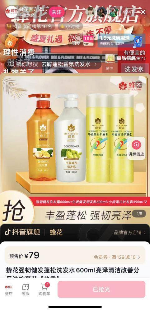 9月19日蜂花抖音官方旗舰店直播间截图