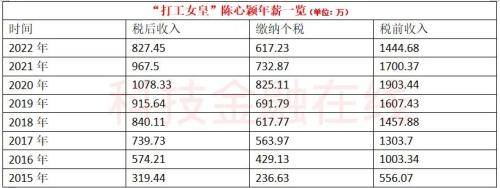 从2015年到2022年,陈心颖合计获得税前薪酬为10976.91万(约1.1亿)。