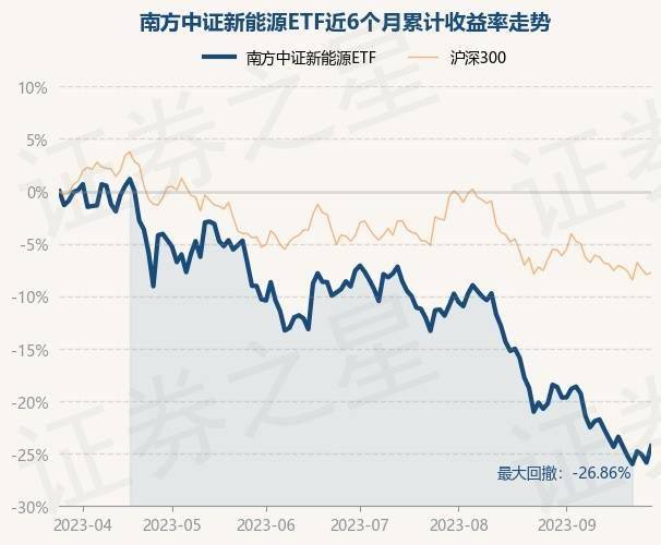 9月27日,南方中证新能源ETF最新单位净值为0.7192元,累计净值为0.7192元,较前一交易日上涨2.14%。历史数据显示该基金近1个月下跌4.46%,近3个月下跌16.5%,近6个月下跌24.3%,近1年下跌36.16%。该基金近6个月的累计收益率走势如下图: