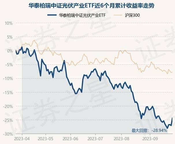9月27日,华泰柏瑞中证光伏产业ETF最新单位净值为1.0096元,累计净值为1.0096元,较前一交易日上涨3.61%。历史数据显示该基金近1个月下跌1.49%,近3个月下跌17.23%,近6个月下跌24.41%,近1年下跌34.91%。该基金近6个月的累计收益率走势如下图: