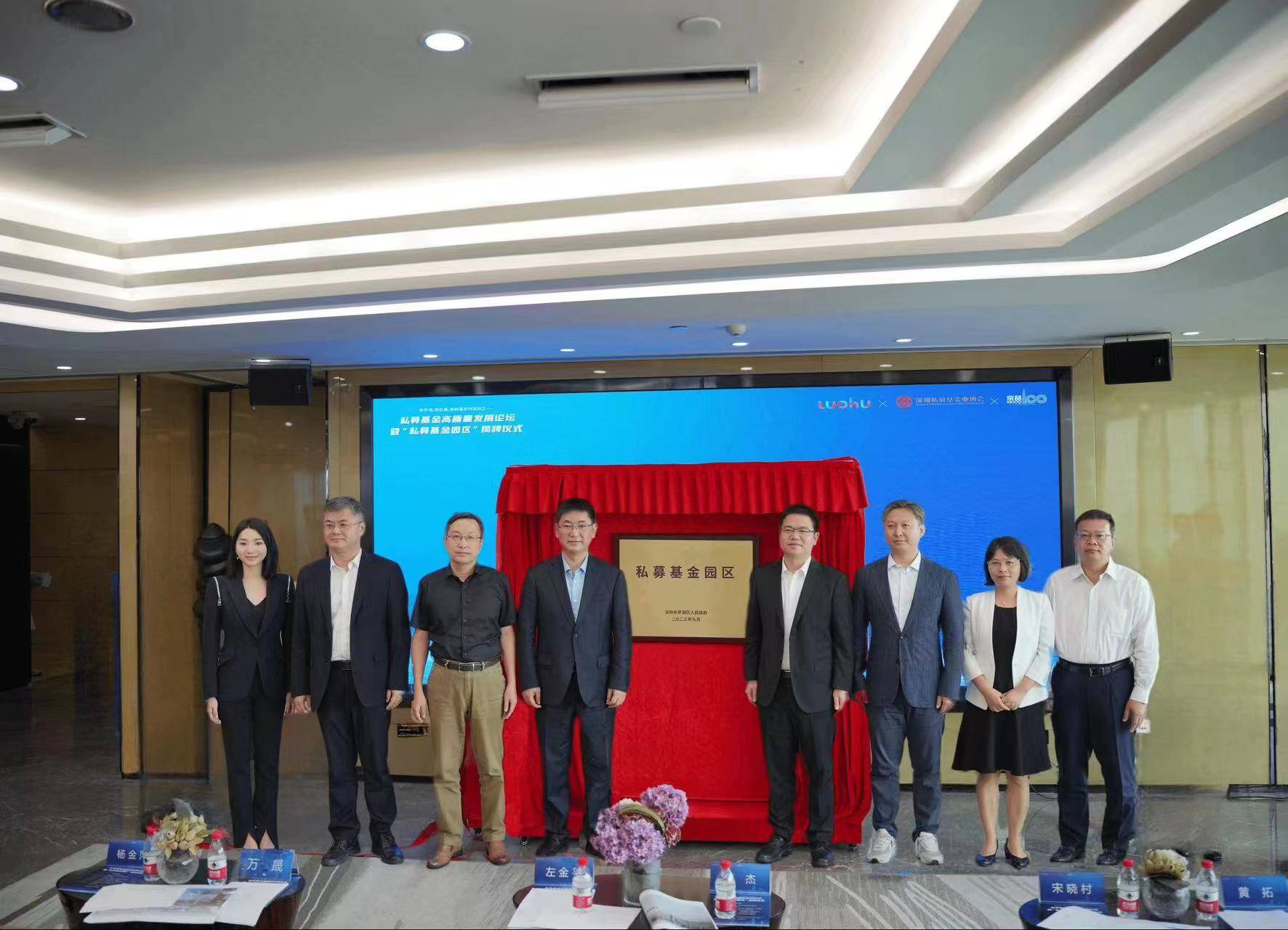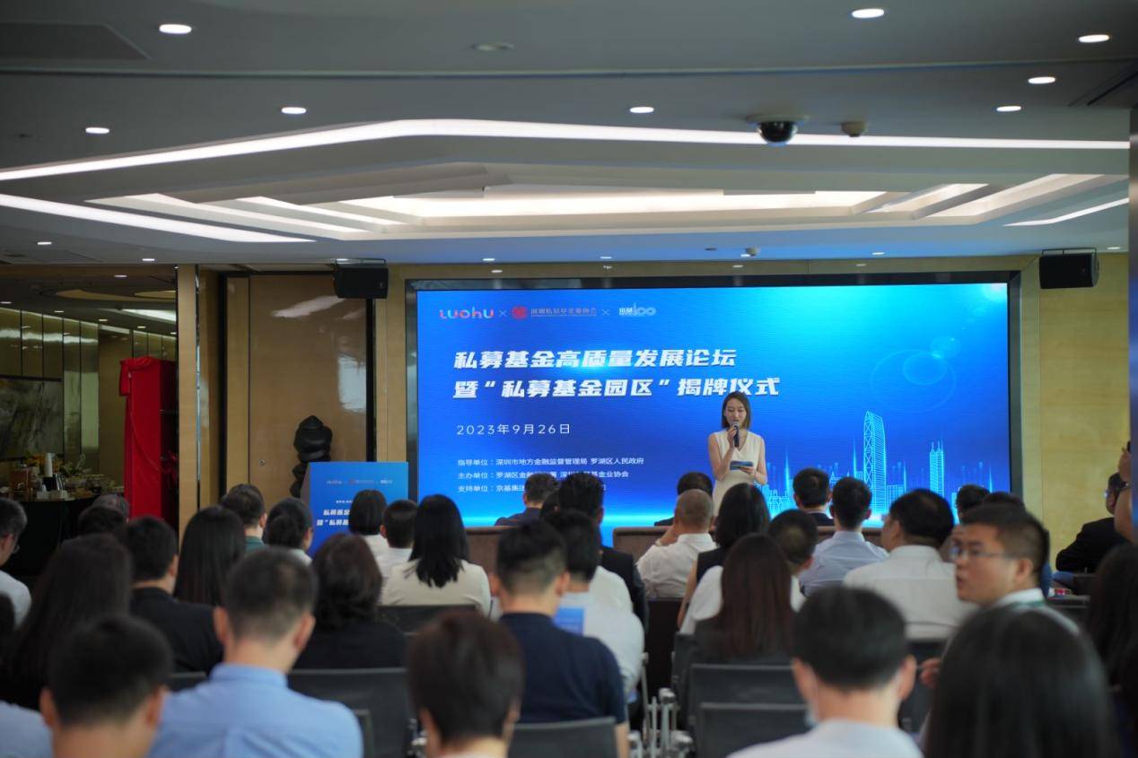 9月26日,“新罗湖 新机遇 新财富”系列活动之“私募基金高质量发展论坛暨‘私募基金园区’揭牌仪式在京基100大厦成功举行,林园投资、中燃基金、渣打创投等首批8家代表性机构签约入驻,合计管理基金规模超700亿元。本次活动在深圳市地方金融监督管理局、罗湖区人民政府指导下,由罗湖区金融服务署、深圳私募基金业协会共同主办。活动上,深圳市地方金融监督管理局局长何杰,深圳证监局二级巡视员宋晓村,罗湖区委常委、常务副区长左金平等共同为私募基金园区揭牌。行业代表性机构、合作金融机构、签约入驻机构等 80余人出席活动。