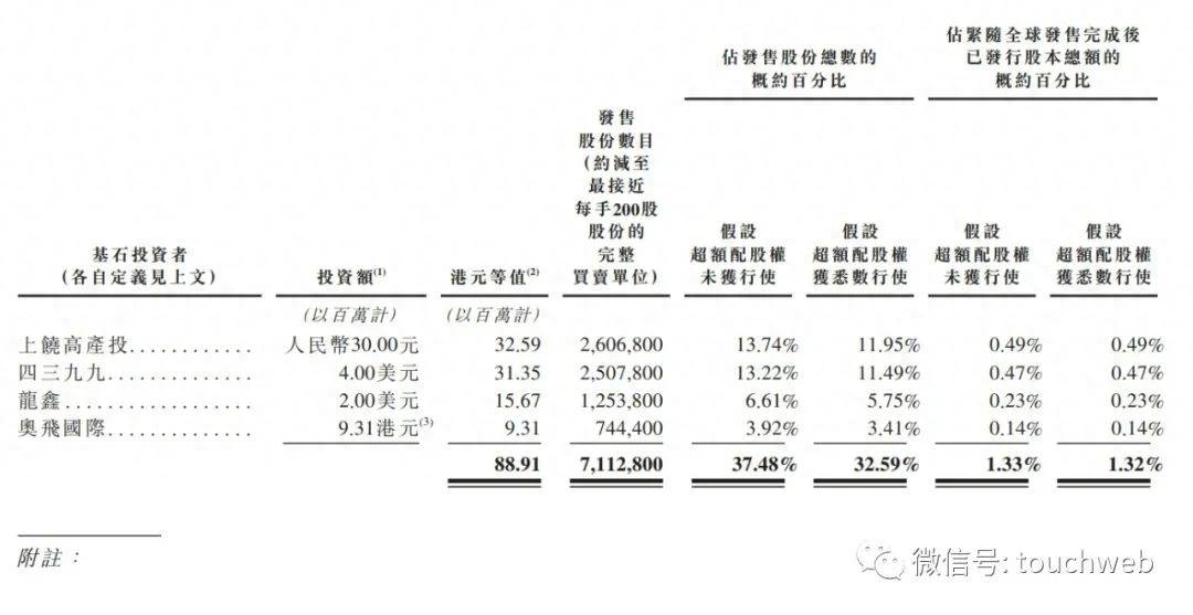 中旭未来的基石投资者包括上饶高产投、四三九九、龙鑫、奥飞国际,上述投资者一共认购8891万港元。