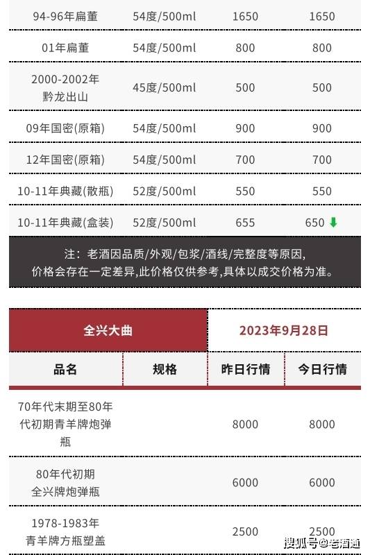 *价格说明:《老酒通》为信息交流服务平台,所发布的商品价格均为参考价,与市场成交价存在一定价差,仅供酒商酒友参考。因老酒价格受酒体、品相、包装、完整度、储存、市场库存等因素影响,即使是同款产品价格也会有所差距,还请知悉。