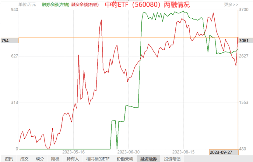 杠杆资金方面,截至9月27日最新数据,中药ETF(560080)单日获融资客加仓近900万元,融资余额再度站上3000万元关口。