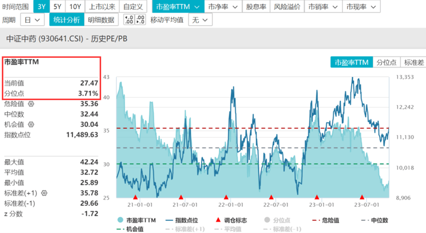 估值方面,截至2023年9月27日,中证中药指数最新PE(TTM)为27.47倍,位于近3年3.71%分位点,即估值低于近3年来96.29%的时间,具有较高的估值性价比!