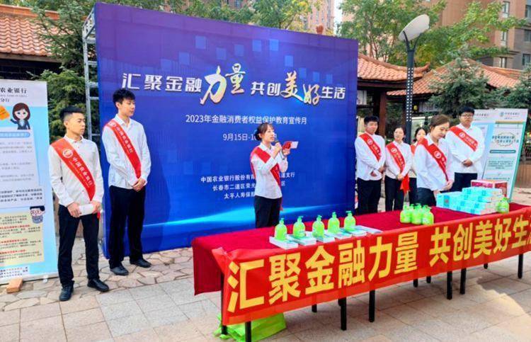 农行吉林省分行坚持以人民为中心的发展思想,为切实提升社会公众金融素养,增强金融安全意识,有效防范化解金融风险,营造和谐健康金融环境,开展2023年“金融消费者权益保护教育宣传月”活动,9月26日为“五进入”(进农村、进社区、进校园、进企业、进商圈)集中宣传日,该行组织开展“五进入”教育宣传活动。
