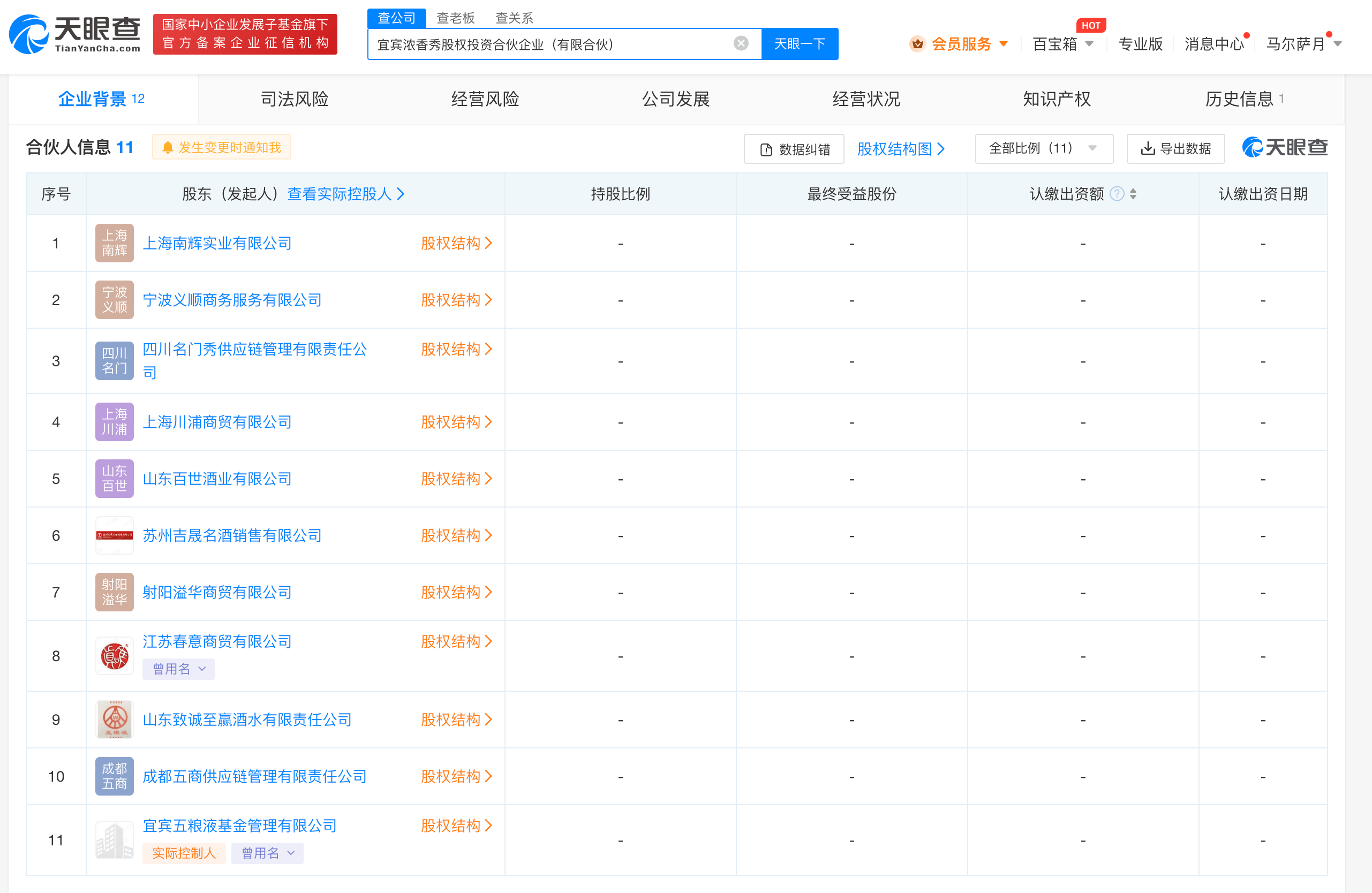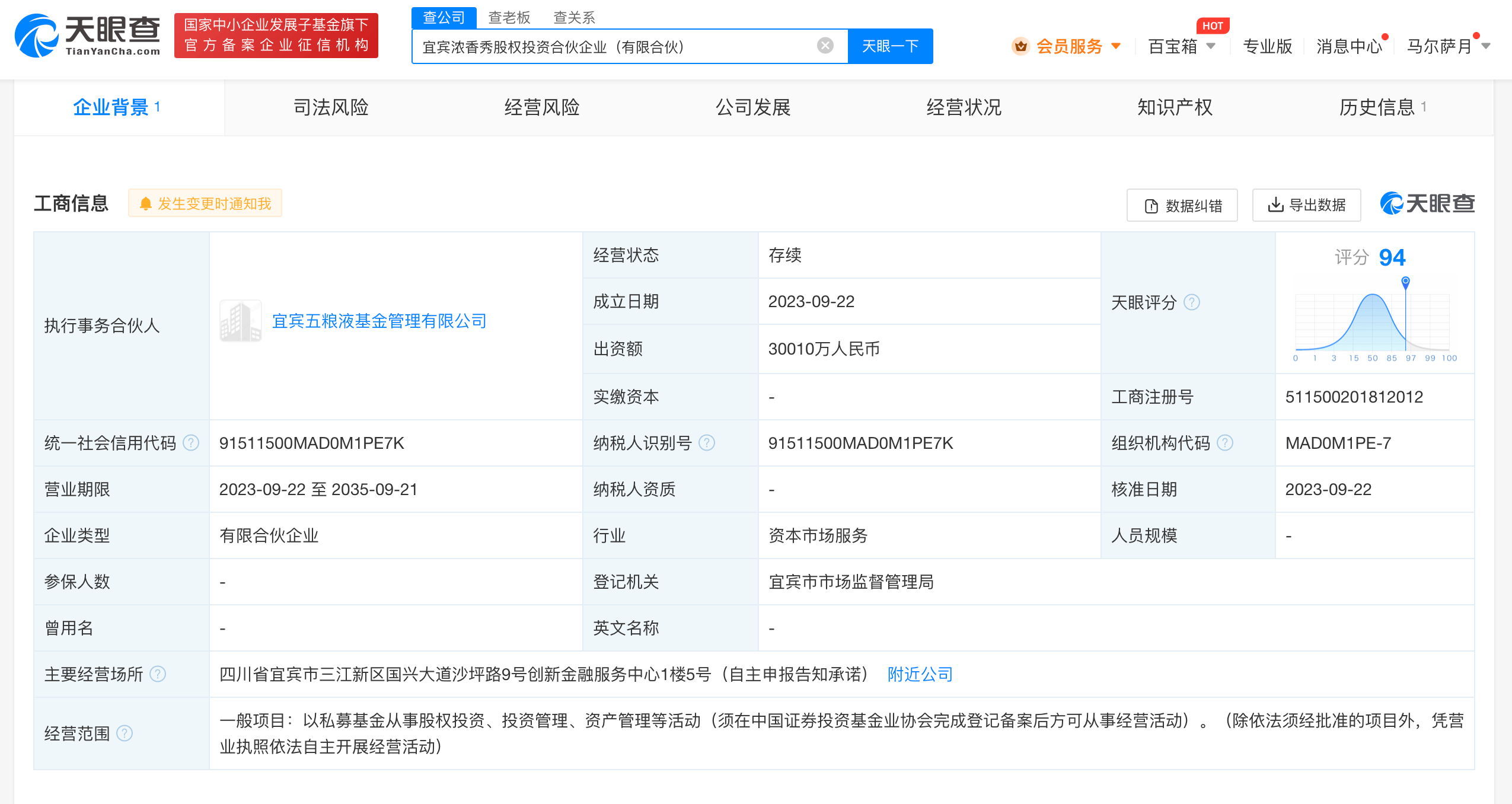 天眼查App显示,近日,宜宾浓香秀股权投资合伙企业(有限合伙)成立,出资额约3亿人民币,执行事务合伙人为宜宾五粮液基金管理有限公司,经营范围含以私募基金从事股权投资、投资管理、资产管理等活动。合伙人信息显示,该企业由成都五商供应链管理有限责任公司、四川名门秀供应链管理有限责任公司、宜宾五粮液基金管理有限公司等11家企业共同出资。