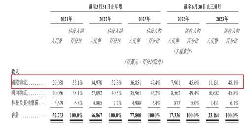 实际上,菜鸟国际市场的收入占比整体呈现下滑趋势。招股书显示,2021财年-2024财年一季度,国际物流收入占比分别为55.1%、52.3%、47.4%、48.1%。