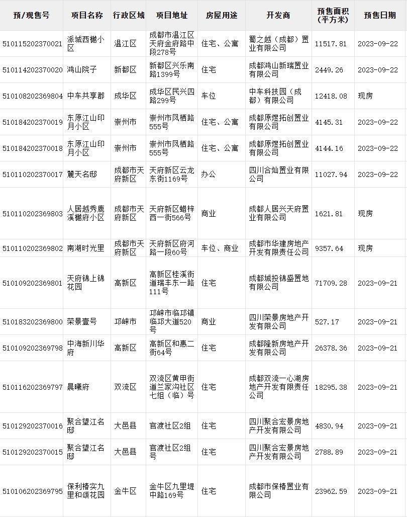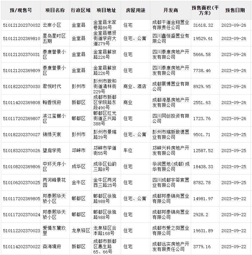 本周大成都范围内,共有55个包含住宅的项目取得预售证,其中有22个项目包含车位、商业、办公、公寓等业态。