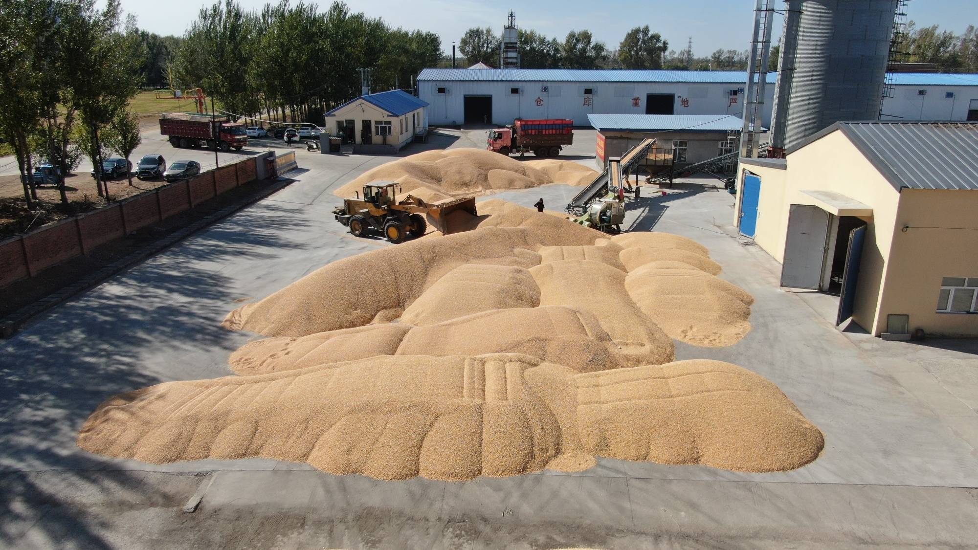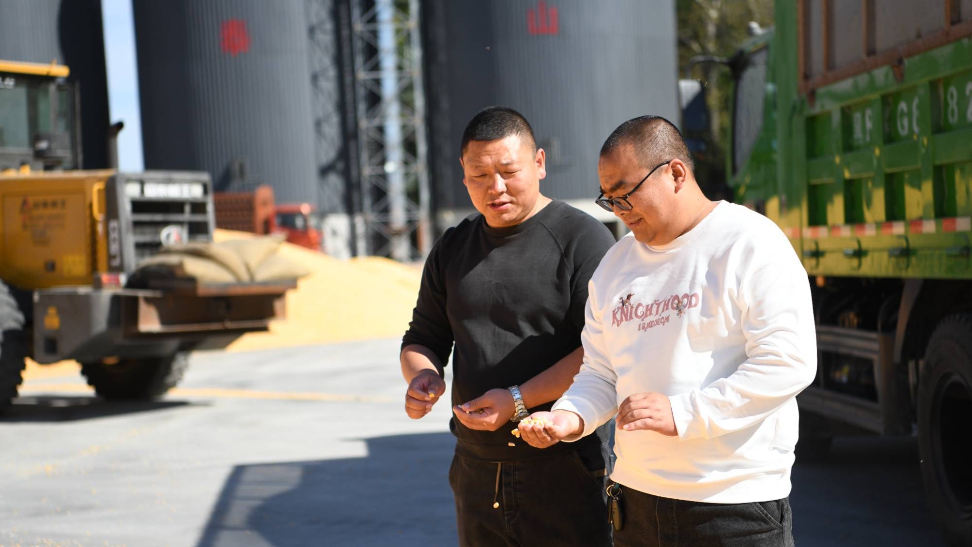 在共青农场有限公司粮贸中心,大型烘干塔24小时不打烊开启全天运行模式,一片热火朝天的收粮场景迎面而来,一辆辆满载金色玉米的车辆排队入场,抽样检测、过秤检斤、现场卸车、当场结算等工作依次展开,整个收购过程井然有序,放眼望去,晾晒场上的玉米已经慢慢堆积成一座小山。共青农场有限公司粮贸中心工作人员孙新杰说:“我们现在已经陆陆续续的开始进行粮食收购了,一天可烘干玉米潮粮500吨,完全能保障玉米潮粮及时烘干,预计今年能完成10万吨任务,同时严格按照政策服务于种植户,做到应收尽收,而且坚持公平、公正、公开原则,以质论价,让种植户卖‘明白粮、暖心粮、舒心粮’。”