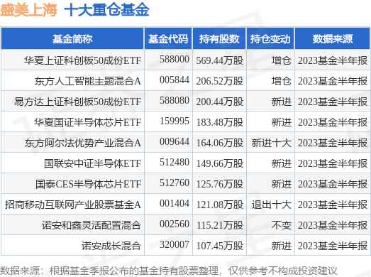 根据2023基金半年报公募基金重仓股数据,重仓该股的公募基金共296家,其中持有数量最多的公募基金为华夏上证科创板50成份ETF。华夏上证科创板50成份ETF目前规模为671.92亿元,最新净值0.9245(9月27日),较上一交易日上涨0.55%,近一年下跌9.39%。该公募基金现任基金经理为张弘弢 荣膺。张弘弢在任的基金产品包括:华夏沪深300ETF联接A,管理时间为2009年7月10日至今,期间收益率为33.01%;华夏沪深300ETF,管理时间为2012年12月25日至今,期间收益率为87.53%;华夏网购精选混合A,管理时间为2016年11月2日至今,期间收益率为26.8%;华夏上证50ETF,管理时间为2016年11月18日至今,期间收益率为22.87%。荣膺在任的基金产品包括:华夏中证500ETF联接A,管理时间为2016年10月20日至今,期间收益率为-2.73%;华夏中证500ETF,管理时间为2016年10月20日至今,期间收益率为-2.75%;华夏中证央企ETF,管理时间为2018年10月19日至今,期间收益率为26.92%;华夏创业板价值ETF,管理时间为2019年6月14日至今,期间收益率为34.15%。