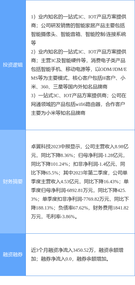卓翼科技涨停收盘,收盘价6.06元。该股于9点31分涨停,未打开涨停,截止收盘封单资金为9630.86万元,占其流通市值2.81%。